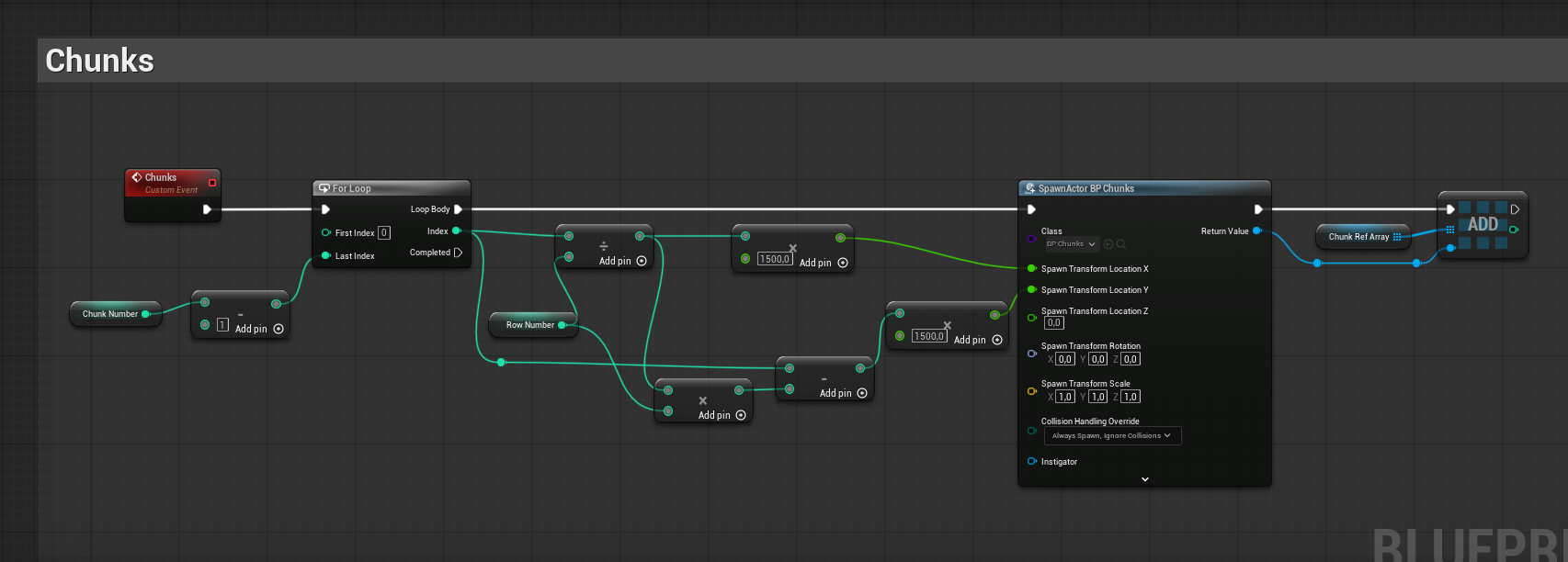 I started by making the edge of the grid into “Corner Chunks” with the use of Line traces and boolen checks.